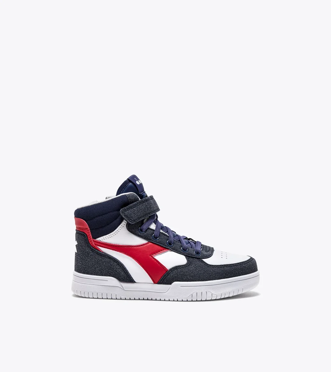 Ein Stück Geschichte, jetzt für die Kleinen. Raptor Mid Dusty PS ist der Sneaker für Kinder von 4 bis 8 Jahren, inspiriert vom Design der Basketballschuhe von Diadora aus den 80er Jahren.