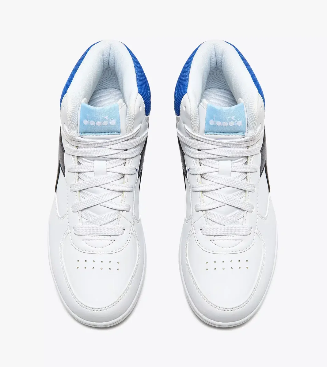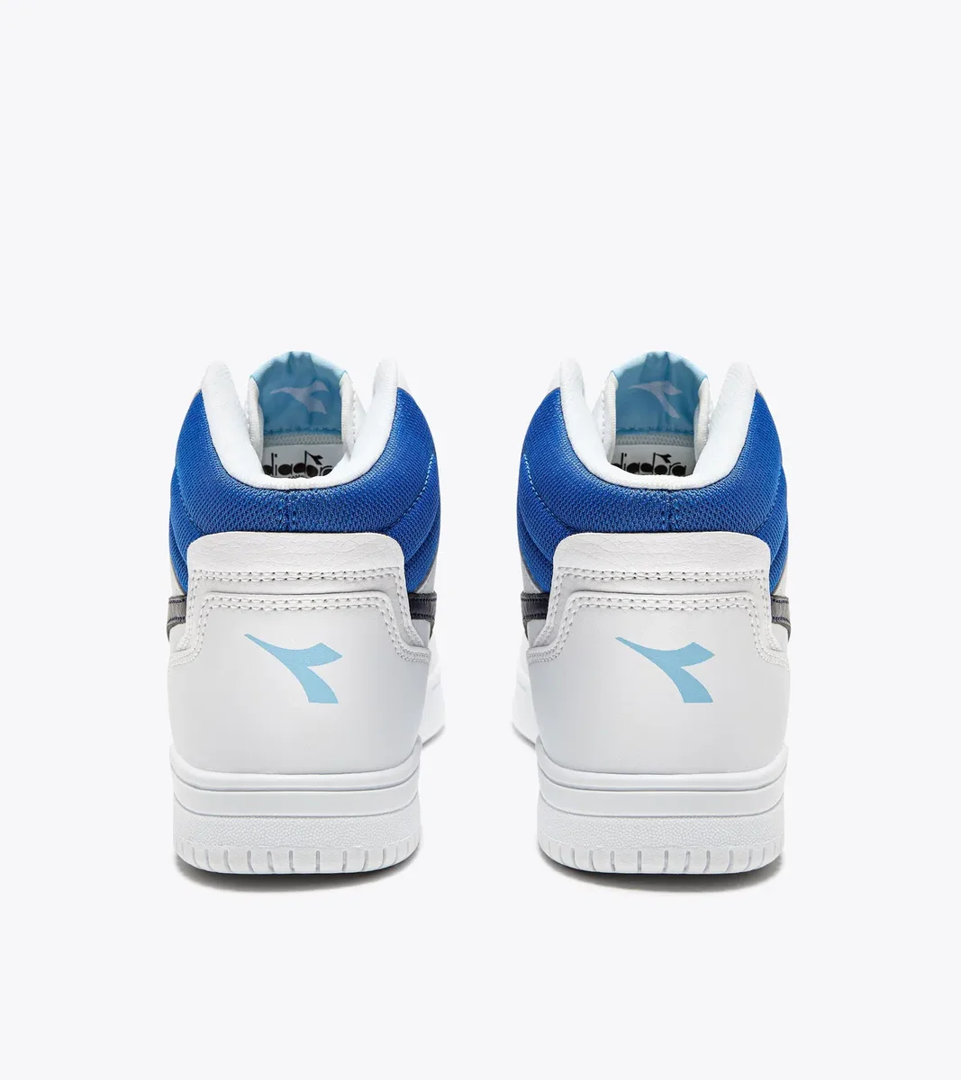 Kinder-Sneaker aus Kunstleder mit Reißverschluss. Das Modell Raptor MID GS verfügt wie die Erwachsenenversion über einen kontrastierenden Fregio- und Stoffkragen.